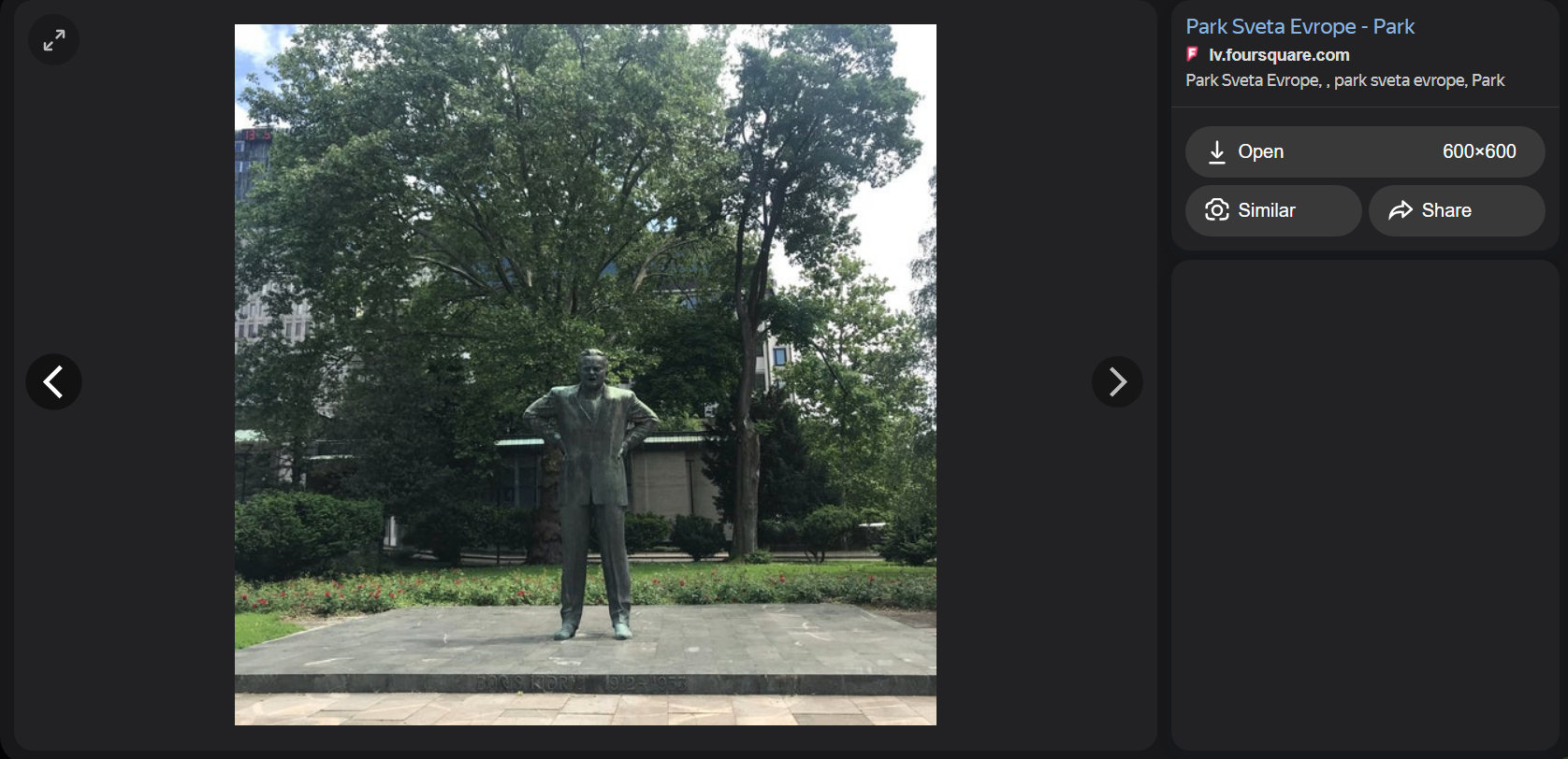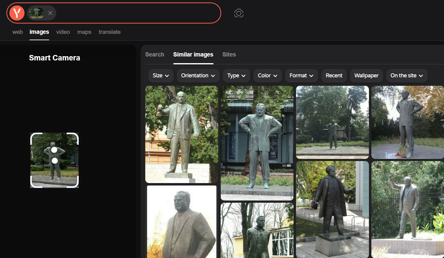 If you search for this image using reverse lookup, you will probably not get any results. Instead, it would be better to search for the prominent elements in the image. For example, let's search for the statue on the right:
